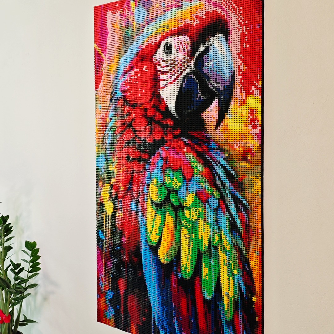 Dla prawdziwego miłośnika papug stworzyliśmy wyjątkowe dzieło - obraz z pixeli, który dosłownie tętni życiem! Ta mozaika przedstawia majestatyczną